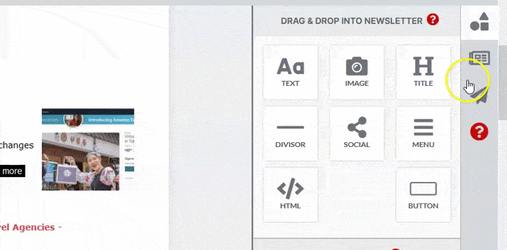 You can add this content to your newsletter in different ways. The most convenient is by dragging and dropping it from the content library tab.
